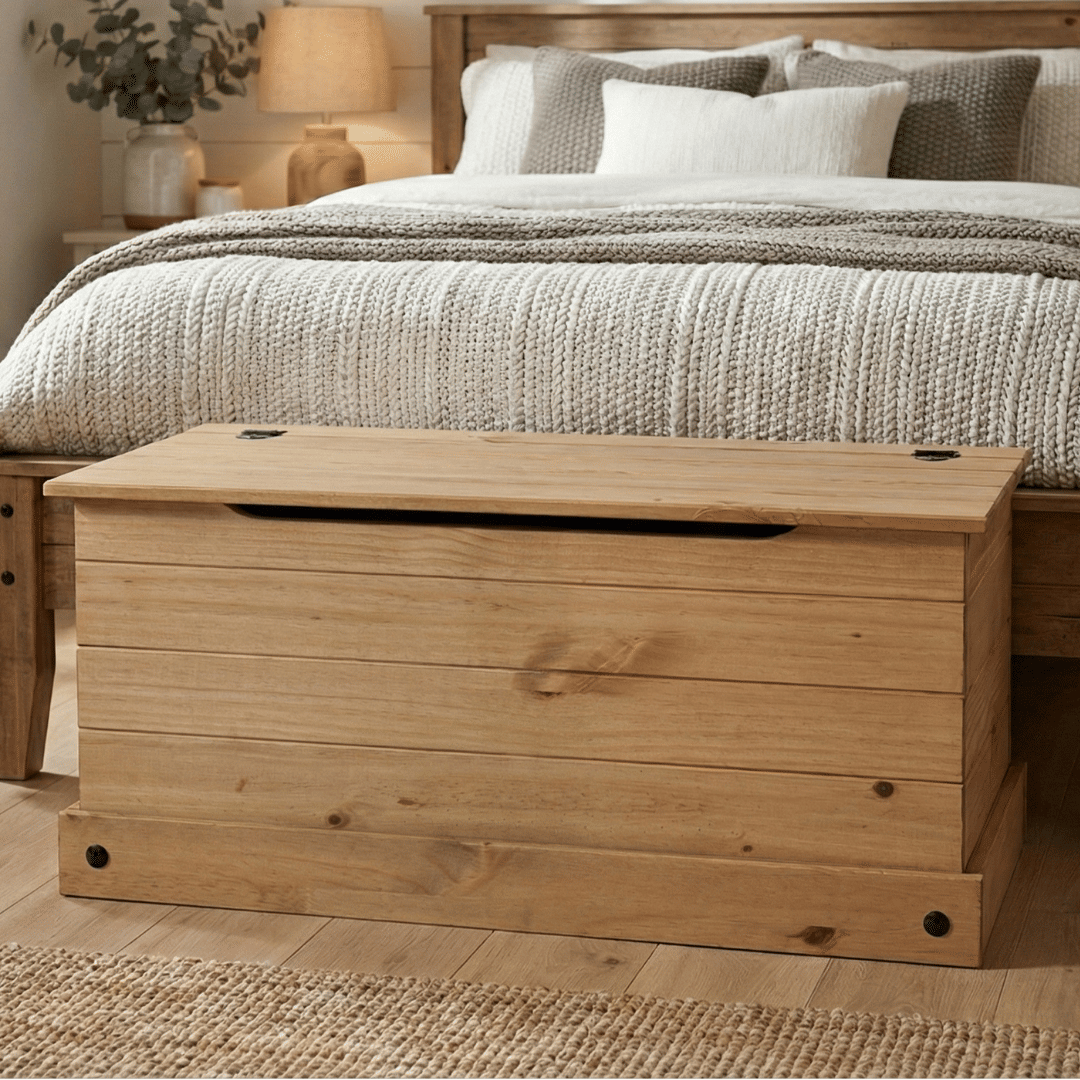 AdicionarApresentamos o elegante Baú de Armazenamento, uma peça versátil que combina funcionalidade com estilo rústico atemporal. Fabricado em madeira maciça de pinus, este baú espaçoso oferece uma solução de armazenamento prática e organizada para qualquer ambiente, seja quarto, escritório ou camarim. Este móvel robusto apresenta um acabamento encerado à mão que realça belamente os veios naturais da madeira. Os detalhes em preto, incluindo dobradiças ornamentadas, alças e pinos, complementam o visual rústico e desgastado. A tampa articulada conta com trava de segurança para maior proteção dos itens armazenados. O baú vem desmontado para facilitar o transporte e inclui todos os componentes necessários, além de instruções claras para uma montagem simples e descomplicada. Uma adição perfeita para quem busca organização com charme tradicional.