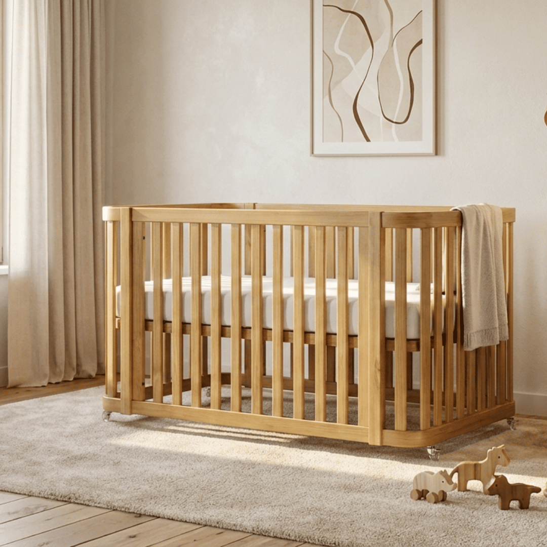 O Berço Evolutivo 1 2 3 com Rodinhas, da Só Berços, é a escolha ideal para pais que buscam praticidade, durabilidade e beleza em um único móvel. Com acabamento em tom mel, ele combina o aconchego da madeira maciça com um design funcional que acompanha o crescimento do bebê.