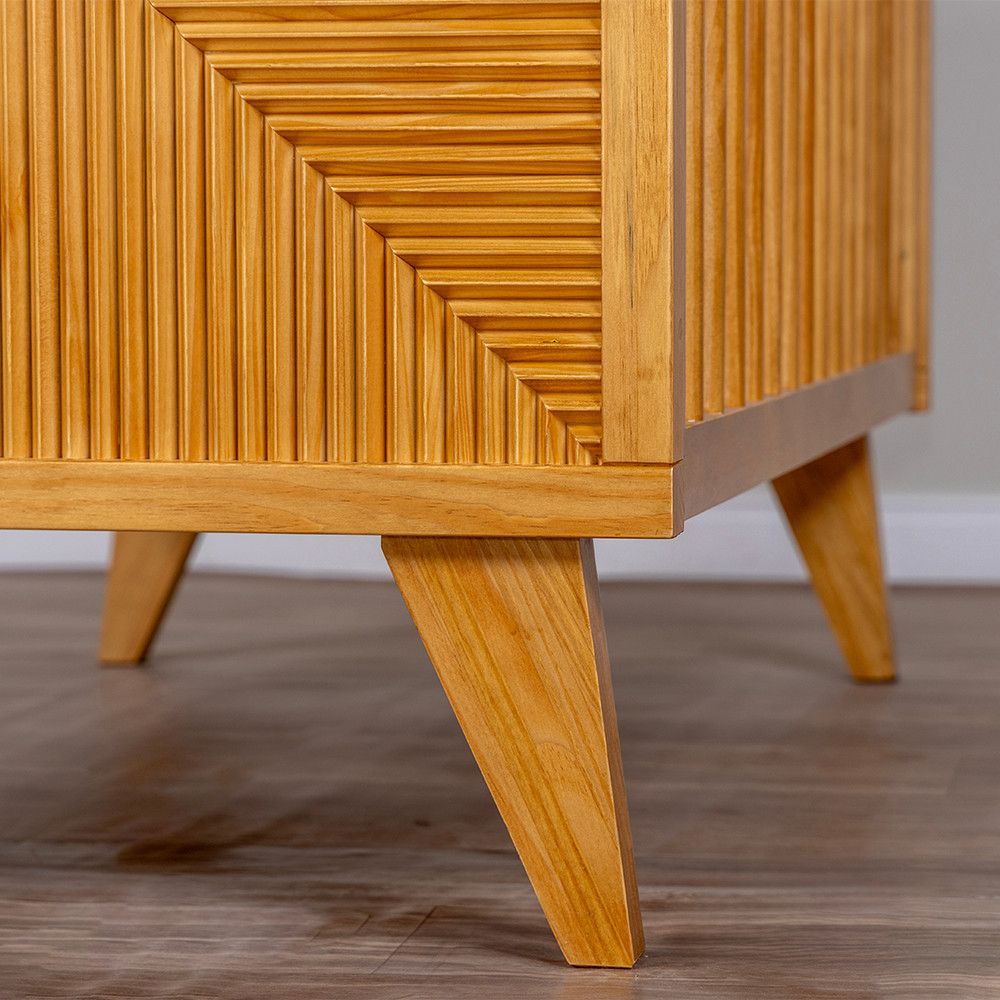 Com linhas retas e cantos suavemente arredondados, o Berço Zig apresenta perfil contemporâneo que se integra bem a ambientes modernos e rústicos. A cabeceira esculpida em madeira natural na tonalidade mel adiciona um charme artesanal, enquanto o corpo em laca branca proporciona brilho e sofisticação sem abrir mão da resistência ao desgaste diário. Essa combinação de materiais e cores confere ousadia ao quarto, permitindo harmonizar com têxteis neutros ou coloridos conforme seu projeto.