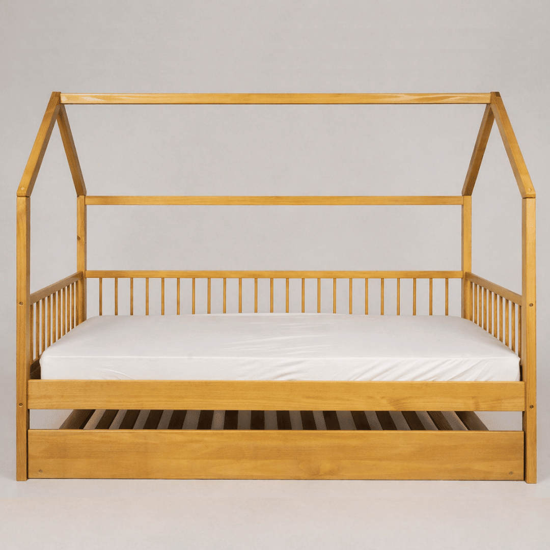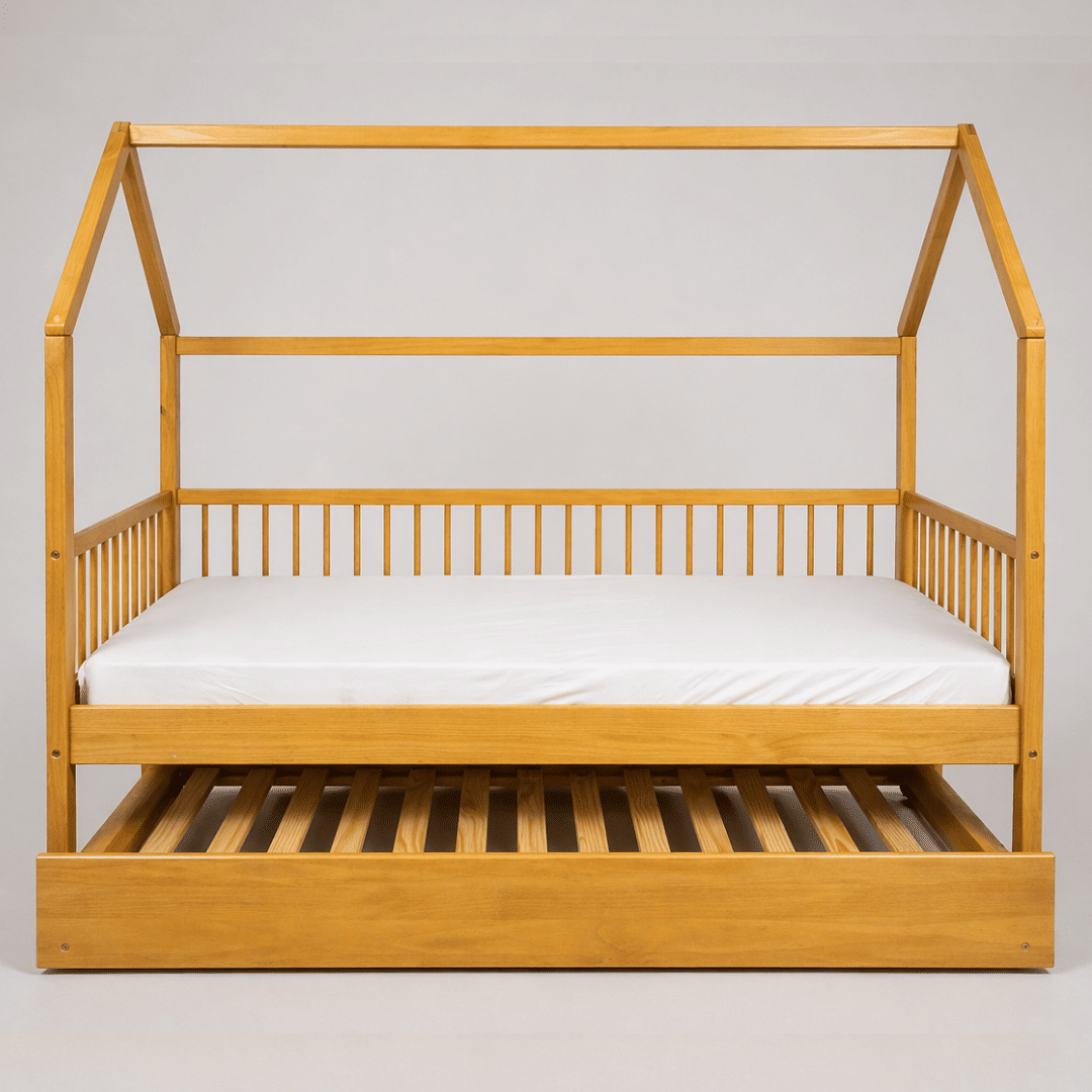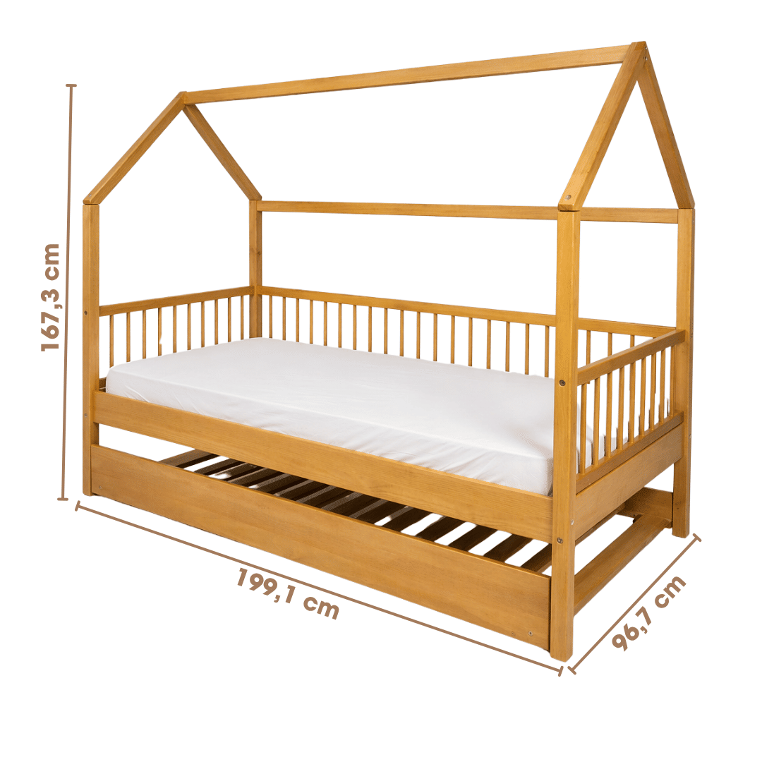 AdicionarTransforme o quarto infantil em um ambiente ainda mais funcional, acolhedor e cheio de imaginação com a Cama Infantil Casinha com Cama Auxiliar Bloomie em Madeira Maciça Pinus Mel. Com um design encantador em formato de casinha, ela estimula a criatividade e a autonomia da criança, além de agregar charme e praticidade ao espaço.