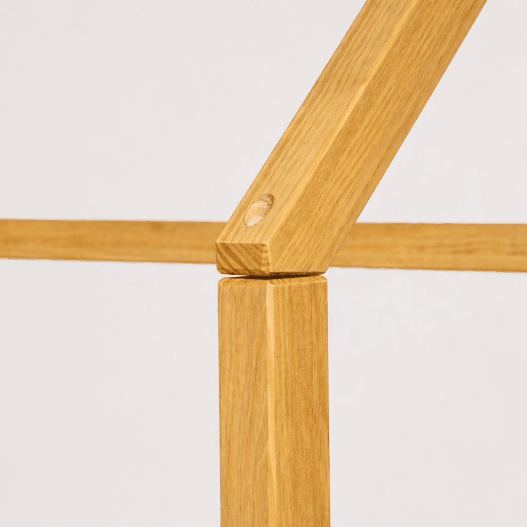O formato de casinha permite personalizações criativas com luzes, tecidos e elementos decorativos, tornando o ambiente ainda mais lúdico e especial. Uma escolha perfeita para quem busca uma cama montessoriana completa, funcional e com design diferenciado para o quarto infantil.