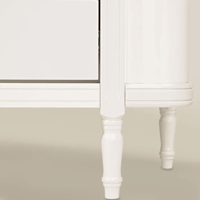 Fabricada em MDF de alta densidade, a Cômoda Toy oferece resistência a impactos e estabilidade estrutural para uso diário intenso. A pintura UV fosca aplicada sobre a superfície confere resistência à umidade e facilidade na limpeza, além de manter o branco sempre uniforme e sem manchas. As corrediças metálicas garantem abertura suave e silenciosa das gavetas, enquanto as réguas internas permitem acomodar objetos mais altos sem perder a estabilidade. Os pés chanfrados elevam levemente o móvel, protegendo-o de umidade do piso e facilitando a limpeza embaixo da cômoda.