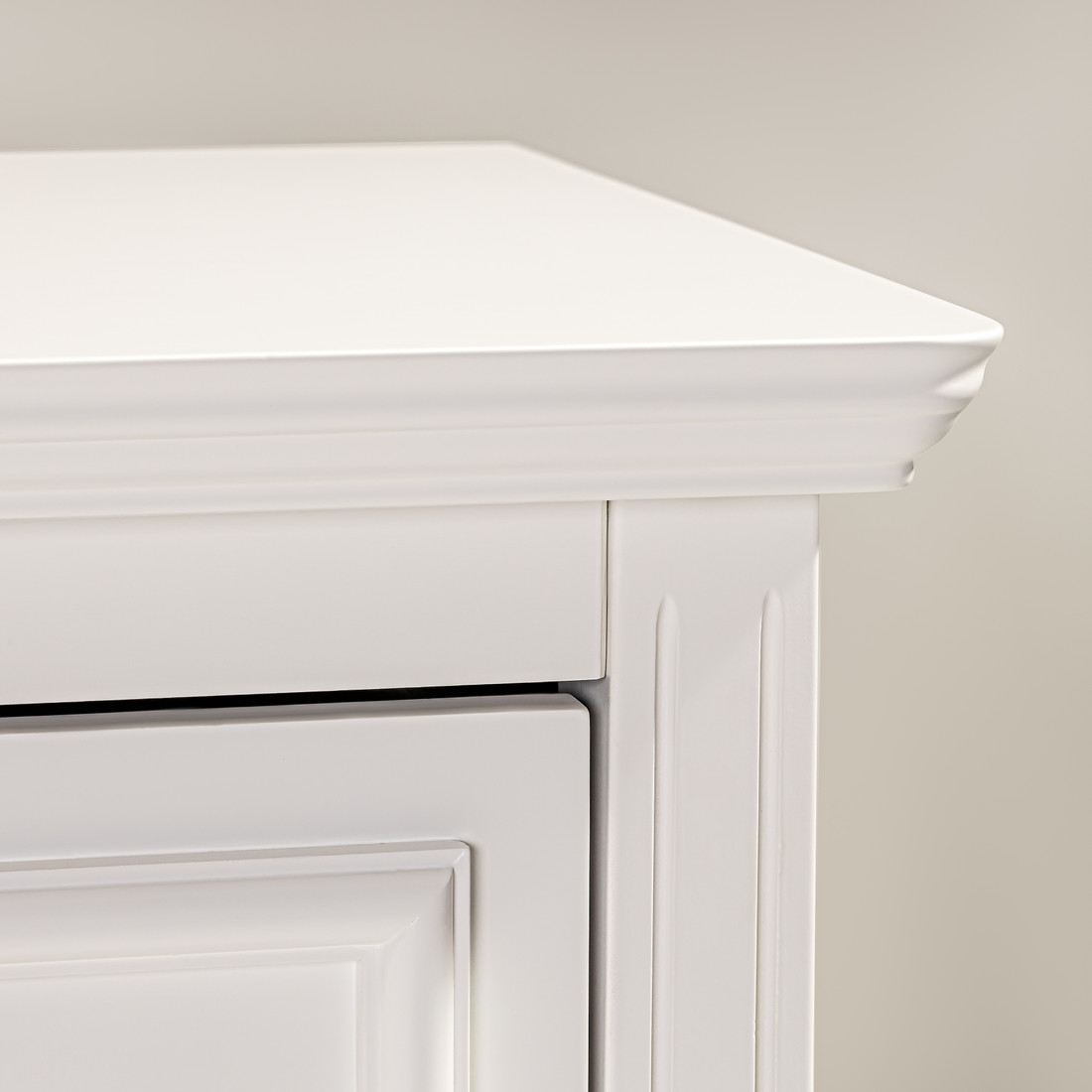 O acabamento em branco neutro do kit harmoniza com diversos estilos de decoração, do clássico ao contemporâneo. A textura trançada da porta da cômoda adiciona um detalhe artesanal que se integra tanto a ambientes clean quanto a projetos mais rústicos, permitindo combinar itens de enxoval e objetos decorativos diversos.