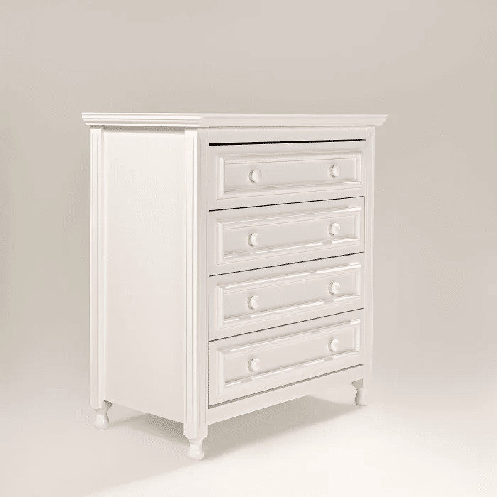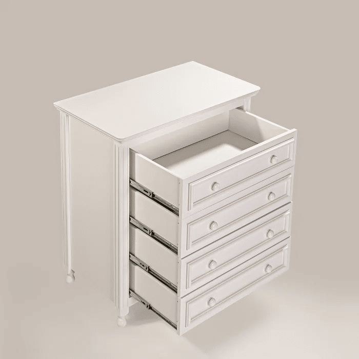 Com quatro gavetas espaçosas e puxadores delicados, a cômoda Feliz oferece organização prática com um toque de elegância, ideal para manter o quarto sempre em ordem.