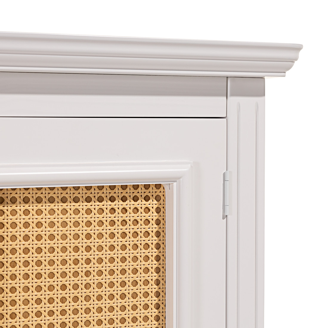 O Kit Feliz Berço 2 em 1 e Cômoda 4 Gavetas e 1 Porta com Rattan em Madeira Maciça Branco com Mel é um conjunto projetado para oferecer solução completa de mobiliário para o ambiente infantil com design tradicional que se adapta a diversos estilos de decoração. O berço traz detalhes arredondados e tela trançada, atributos que promovem harmonia visual e um toque clássico ao espaço, além de combinar segurança e conforto.