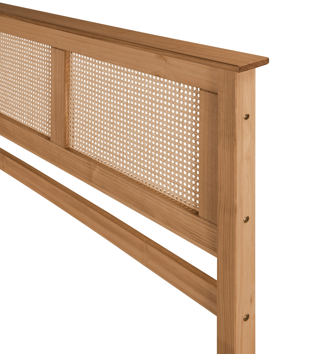 Produzido de madeira maciça de Pinus, com acabamento em Rattan.