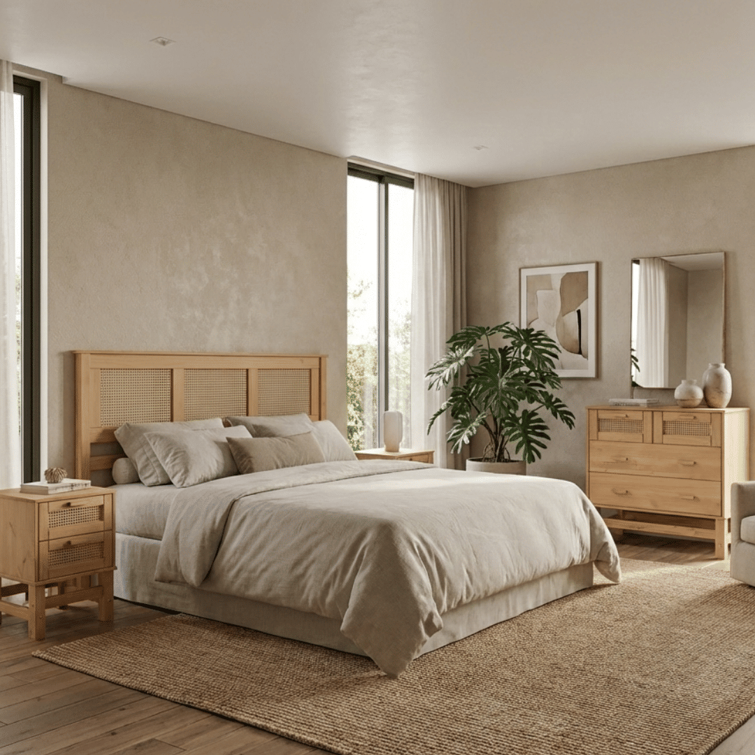 AdicionarTransforme seu quarto em um verdadeiro refúgio de estilo e sofisticação com o nosso kit exclusivo, composto pela Cabeceira de Cama KING em madeira e rattan, pela Mesa de Cabeceira Rattan e pela majestosa Cômoda em Madeira e Rattan de 04 gavetas. Cada peça foi cuidadosamente projetada para agregar charme natural e elegância ao seu ambiente, criando uma atmosfera tranquila e cheia de personalidade. A Cabeceira de Cama, com seu design artesanal e contemporâneo, é a peça central perfeita para um quarto que exala requinte. O acabamento em rattan traz um toque de frescor e leveza. Acompanha a Cabeceira KING, a Mesa de Cabeceira Rattan, que combina praticidade e beleza. Com uma gaveta e um nicho adicional, oferece espaço suficiente para organizar seus itens essenciais, mantendo o ambiente sempre funcional e elegante. Para completar o ambiente, a Cômoda em Madeira e Rattan de 04 gavetas é a peça perfeita para revitalizar seu quarto. Seus detalhes em rattan adicionam uma dose de elegância e sofisticação a esta obra-prima artesanal. Com amplas gavetas, ela oferece excelente capacidade de armazenamento, sem abrir mão do estilo refinado que sua decoração merece.