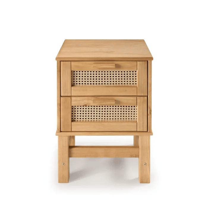 Produzido de madeira maciça de Pinus, com acabamento em Rattan.