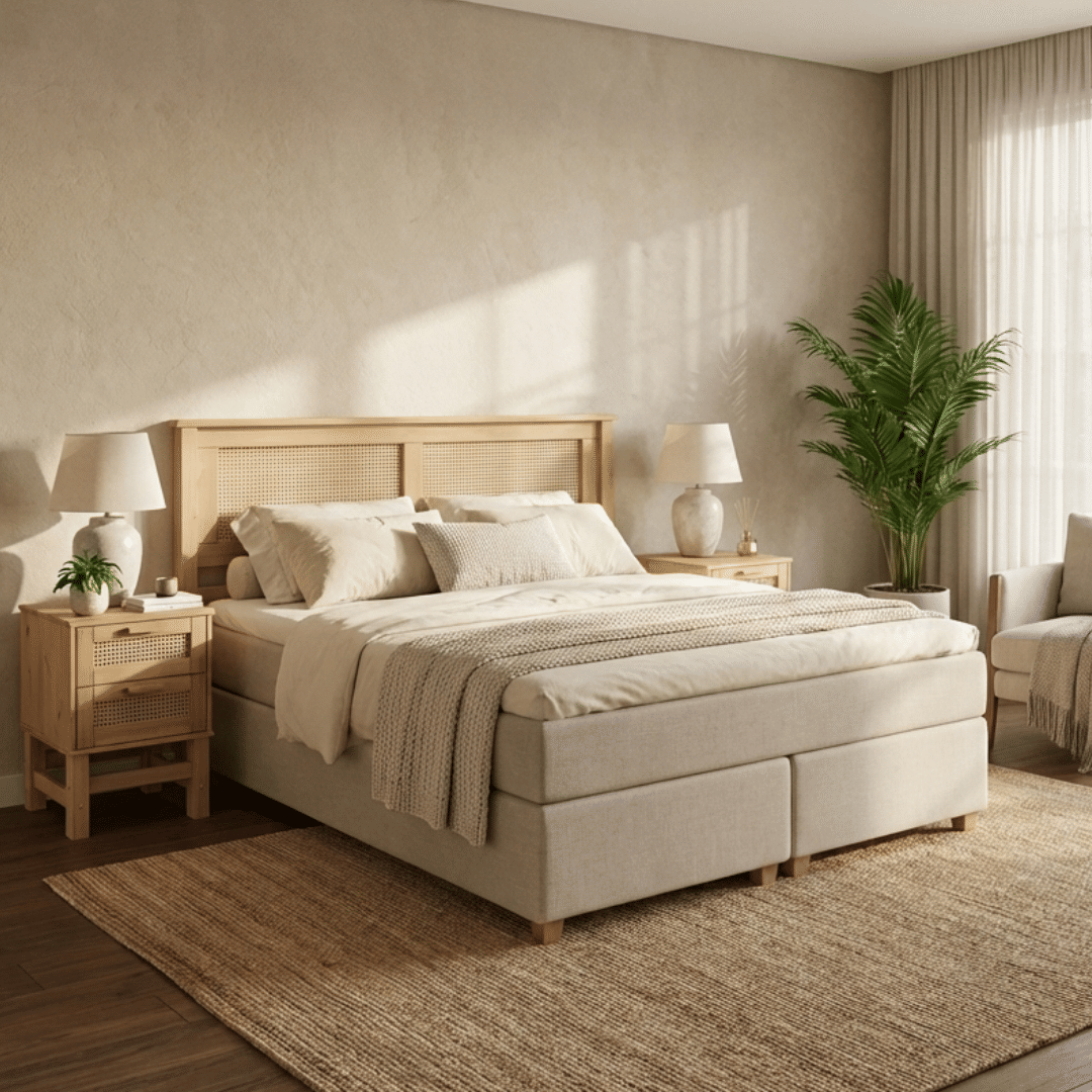 AdicionarTransforme seu quarto em um verdadeiro refúgio de estilo e sofisticação com o nosso kit exclusivo, composto pela Cabeceira de Cama em madeira e rattan e por uma Mesa de Cabeceira Rattan. Cada peça foi cuidadosamente projetada para agregar charme natural e elegância ao seu ambiente, criando uma atmosfera tranquila e cheia de personalidade. A Cabeceira de Cama, com seu design artesanal e contemporâneo, é a peça central perfeita para um quarto que exala requinte. O acabamento em rattan traz um toque de frescor e leveza. Acompanha Cabeceira e uma Mesa de Cabeceira Rattan, que combinam praticidade e beleza. Com duas gavetas, oferece espaço suficiente para organizar seus itens essenciais, mantendo o ambiente sempre funcional e elegante.
