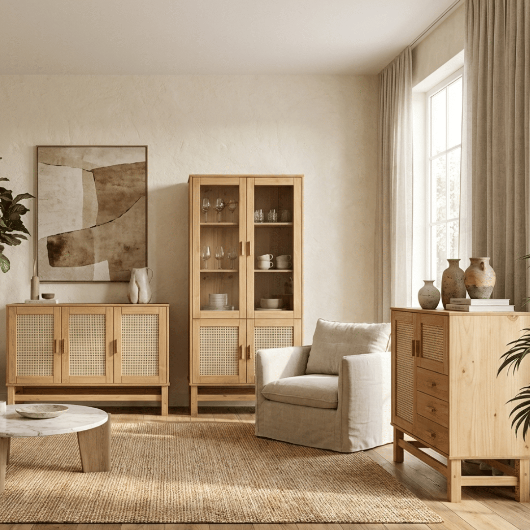 AdicionarRenove sua casa com charme e funcionalidade através deste conjunto elegante, composto por uma Cristaleira em vidro e rattan e dois modelos de Balcão Buffet em madeira e rattan natural. A cristaleira oferece espaço ideal para exibir objetos decorativos, louças e cristais com sofisticação. Já os balcões, com diferentes tamanhos e compartimentos, trazem organização e beleza para sala de jantar ou estar, unindo design atemporal com o aconchego do rústico-chique. Um trio perfeito para ambientes elegantes, práticos e acolhedores.
