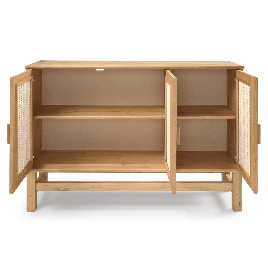 Confira o manual de montagem do Balcão Buffet em madeira e Rattan Natural 03 Portas.