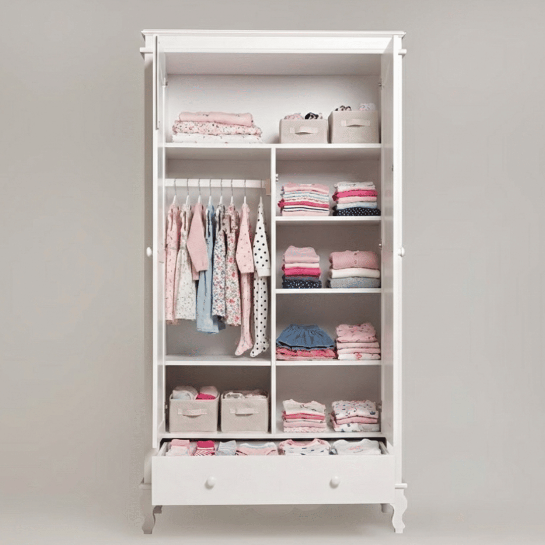 O Roupeiro Fada é a escolha ideal para quem busca praticidade, organização e um toque encantador no quarto da criança. Com design delicado e materiais de alta qualidade, ele foi pensado para facilitar a rotina dos pais e incentivar a organização desde cedo.